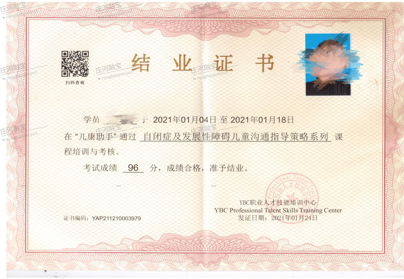 資質輔助溝通系統(tǒng)結業(yè)證書
