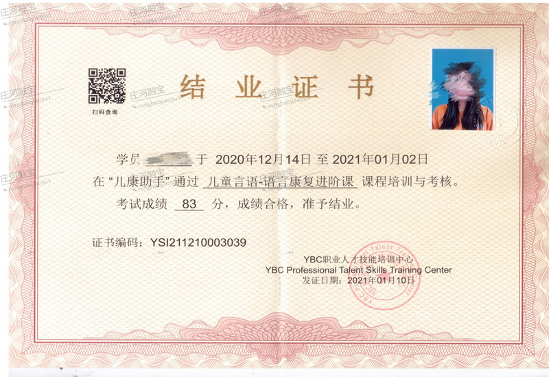 兒童語言-語言康復(fù)進階課結(jié)業(yè)證書